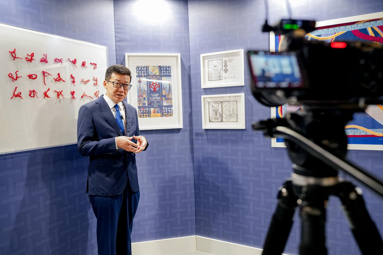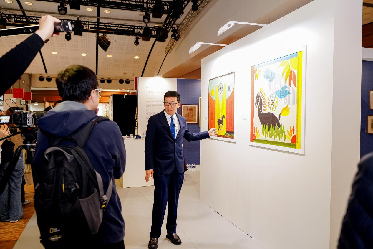 展览期间,陈董接受了来自新华社、中央电视台、中新社等媒体的现场采访。陈董介绍到,此次恒源祥参与巴黎国际文化遗产沙龙机遇难得。恒源祥1927年创立初期,深受Art Deco装饰艺术美学影响,在20世纪三四十年代将国际流行时尚与中国生活美学融合,形成了恒源祥独特的海派编织文化。陈董介绍了恒源祥2026中国马年的主题视觉设计和产品延伸开发,以及近两年在中法文化交流与艺术设计上的发展情况,希望恒源祥由此更好地让品牌走向国际。2027年,恒源祥品牌即将迎来百年华诞,会系统提炼并在全球语境下推广恒源祥海派文化基因,实现从制造出海到文化出海的跨越,向世界展示恒源祥作为诞生于国际化时尚都市上海的历史底蕴与创新活力。