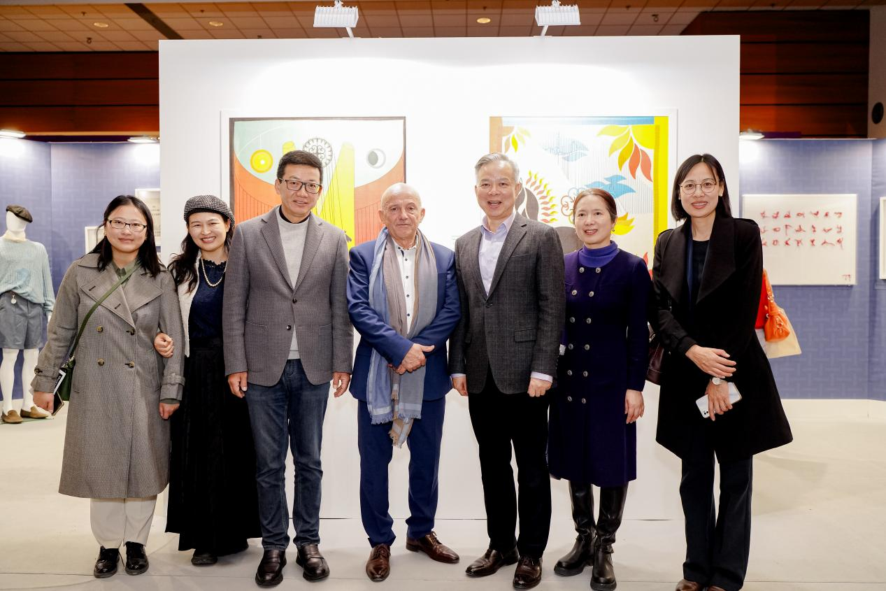 10月24日,法国艺术工会及巴黎国际文化遗产沙龙主席斯蒂芬·加勒诺(Stéphane Galerneau)、中国驻法国大使馆公使陈力夫妇、文化参赞王茵等嘉宾莅临恒源祥展区,恒源祥集团董事长兼总经理陈忠伟等热情接待并详细介绍恒源祥的发展历程。