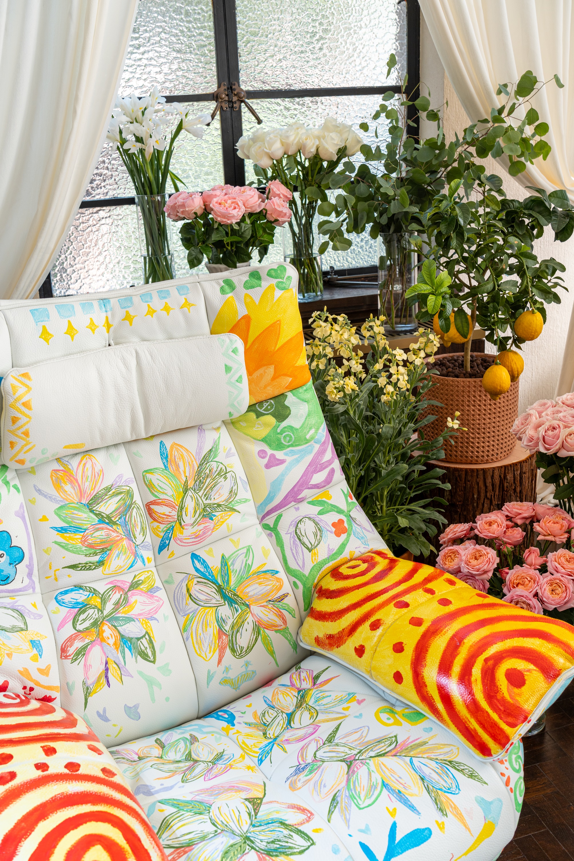 由ANSWER安生设计创世人吴振宝,精心绘制的Re-Vive经典躺椅,其细腻鞣革覆面上,色彩恣释的橄榄枝叶,以及自由烂漫的普利亚图腾在流畅轮廓上挥洒叙述。