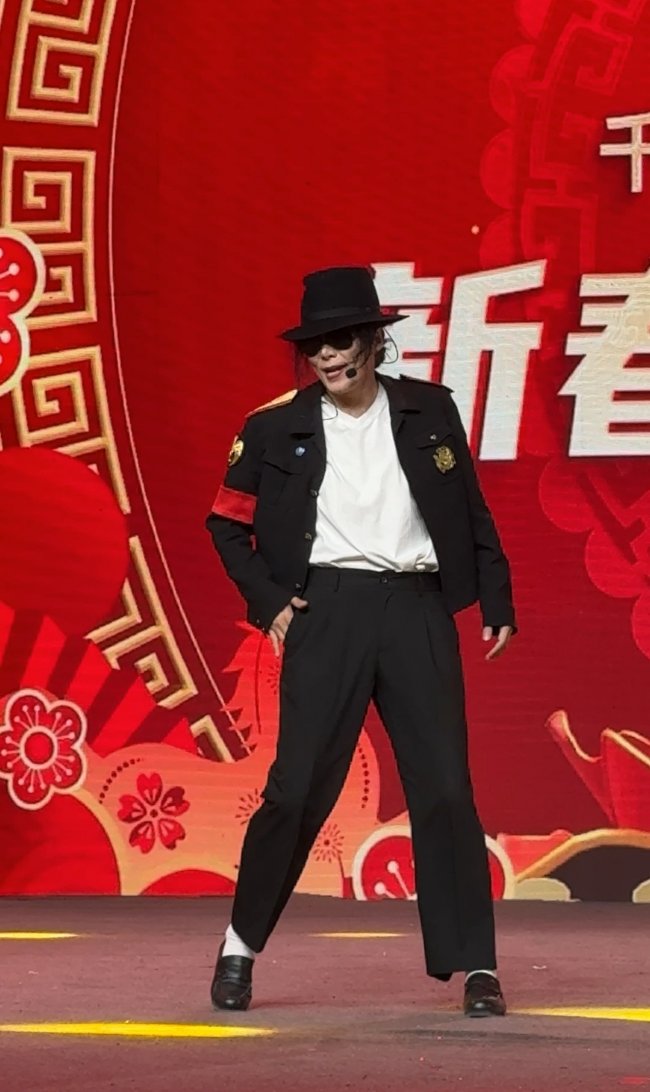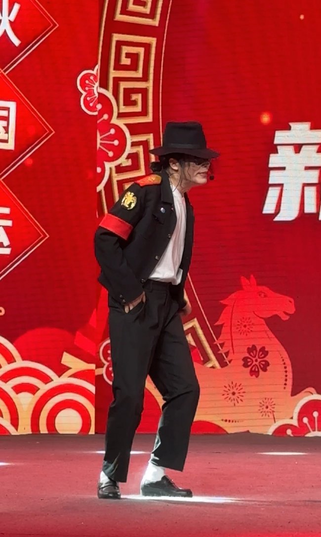 作为晚会的重磅表演嘉宾,王杰克逊先生以一袭银色亮面演出服搭配标志性墨镜惊艳登场,其造型精准还原了流行音乐之王的舞台风范。在表演中,他不仅带来了迈克尔·杰克逊的经典歌曲,更以一手戴白色绷带、身体前倾的招牌舞姿、瞬间引爆全场。其精准的模仿、充满力量的舞蹈和强烈的舞台感染力,将现场气氛推向高潮,赢得了在场师生与嘉宾的热烈掌声。王杰克逊先生通过其艺术表演,向全球青少年传递了积极向上、追求卓越的精神力量。