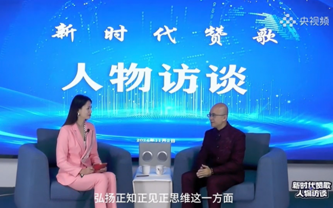 在央视演播厅接受主持人访谈