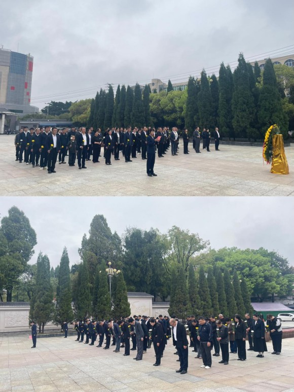 在革命烈士纪念馆悼念广场,全体人员整齐肃立,向烈士纪念碑深深鞠躬,集体默哀寄托哀思,向革命英烈敬献花篮,整理缎带致敬英魂,随后全体人员三鞠躬,完成庄重的集中悼念仪式。仪式结束后,全体人员统一乘车前往兴国烈士陵园,分组开展精细化祭扫服务。